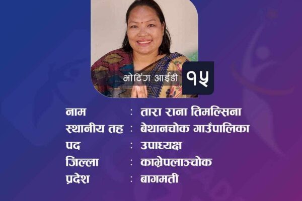 काठमाडौ। महिला सशक्तीकरणको क्षेत्रमा काम गर्ने ‘कल्प इम्पावर वेमेन नेपाल’ ले शी लिड्स आइकन–२०८१ को उत्कृष्ट २७ मा काभ्रे जिल्ला बेथानचोक गाउँपालिकाका उपाध्यक्ष तारा राना छनोटमा परेकी हुन। विभिन्न स्थानीय तहका १ सय ४० जना महिला जनप्रतिनिधिबाट राना उत्कृष्ट २७ जना महिला जनप्रतिनिधिमा छनोट भएकी हुन । देशभरका महिला जनप्रतिनिधिहरूको कर्मलाई विश्वसामु परिचित गराउने उद्देश्यले…
