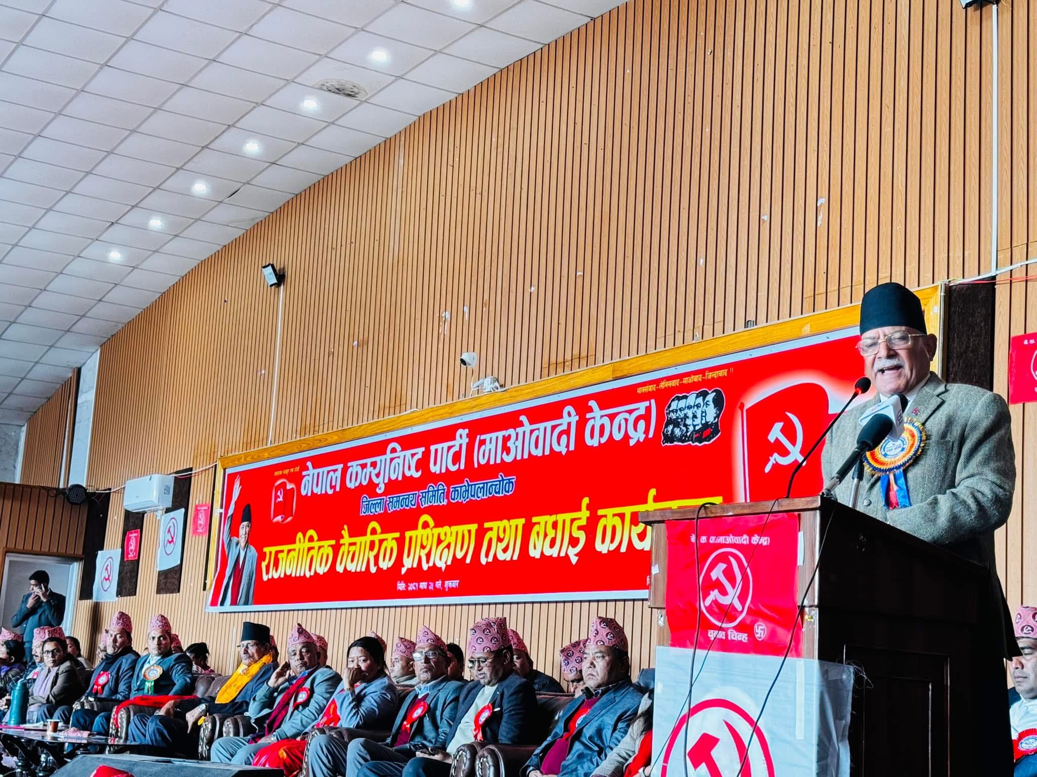 नेपाल कम्युनिष्ट पार्टी (माओवादी केन्द्र) काभ्रेपलाञ्चोक जिल्ला समन्वय समितिले आज धुलिखेलमा आयोजना गरेको ‘राजनीतिक तथा वैचारिक प्रशिक्षण एवं पार्टीको पालिकास्तरको नयाँ निर्वाचित समितिलाई बधाई’ कार्यक्रममा उनले आफू तेस्रो पटक प्रधानमन्त्री हुँदा सुशासन, सामाजिक न्याय र समृद्धिकोे थालनी गरेसँगै समाजवादी क्रान्तिका सुरुवात भएको बताएका हुन्।