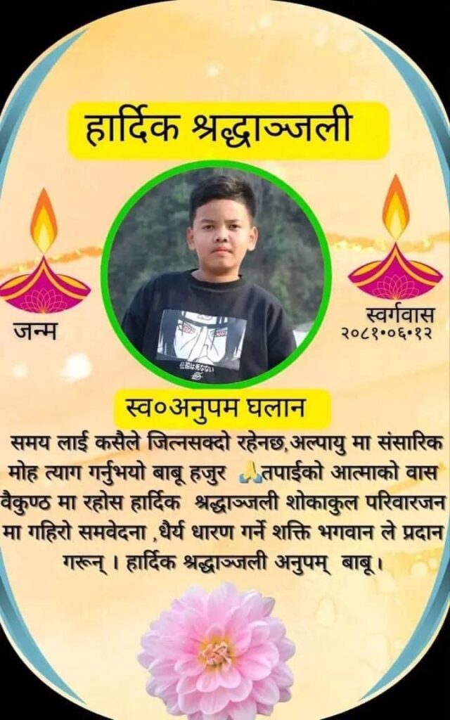 विचारसमचारहार्दिक श्रदाञ्जलीअनुपम घलान hyangladokhang१३ आश्विन २०८१, आईतवार १७:५०September 29, 202401 min Post navigation Previous: १४ जना शव निकालि सकेको झ्याप्ले खोलामा अर्को माइक्रो बस (हायस) पनि पुरिएको फेला परेको छ। Next: सबै समुदायको अभिभावक भनेको राज्य हो ,राज्यले कुनै पनि समुदायको चाडबाड माथि विवेद गर्नु हुँदैन, सबैलाई समान व्यवहार गर्नु पर्छ चाहे त्यो ल्होछार होस् या दशैं, शिवरात्रि होस् या तेमाल जात्रा ,सबैलाई समान अधिकार र व्यवहार राज्यले गर्नु पर्छ 🙏🙏